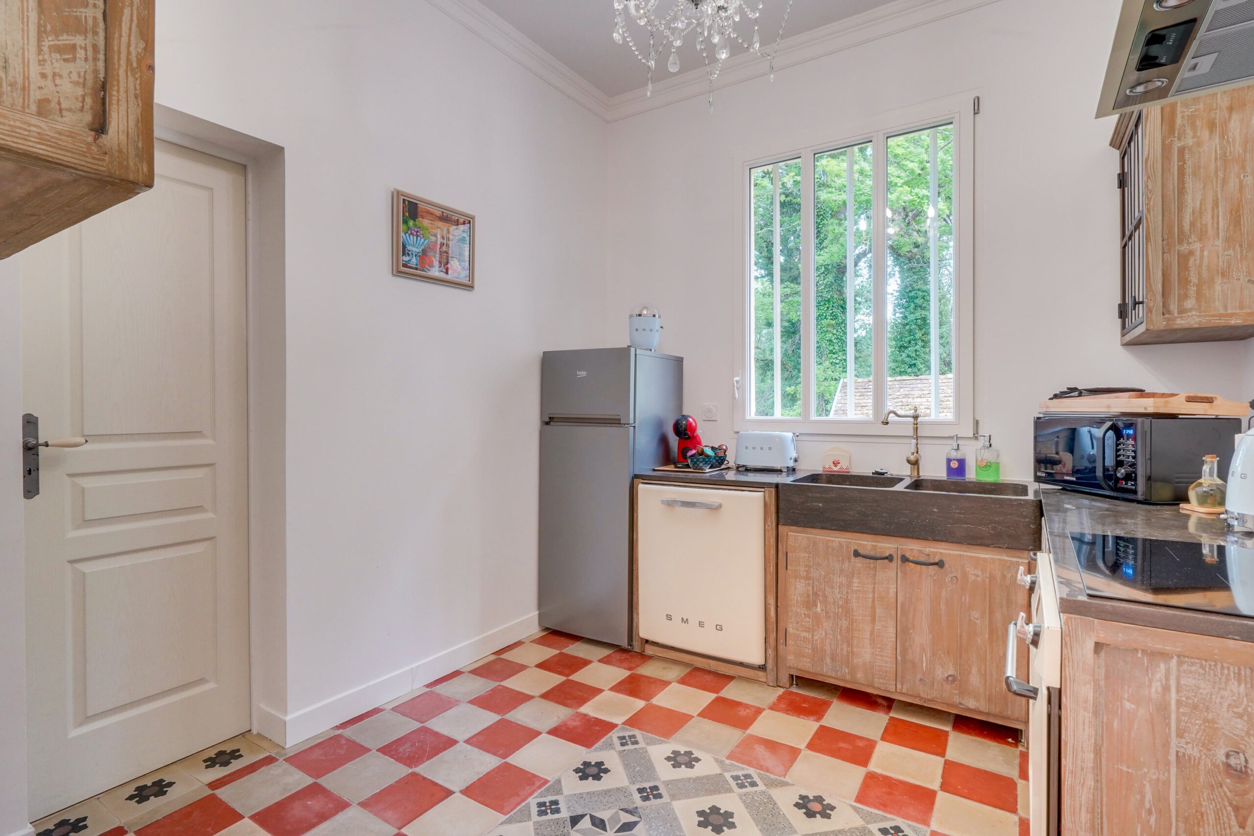 – Une cuisine entièrement équipée (Four, micro-ondes, lave-vaisselle, machine à café, bouilloire, plaque induction, tous les ustensiles de cuisine nécessaires ainsi que des condiments)
