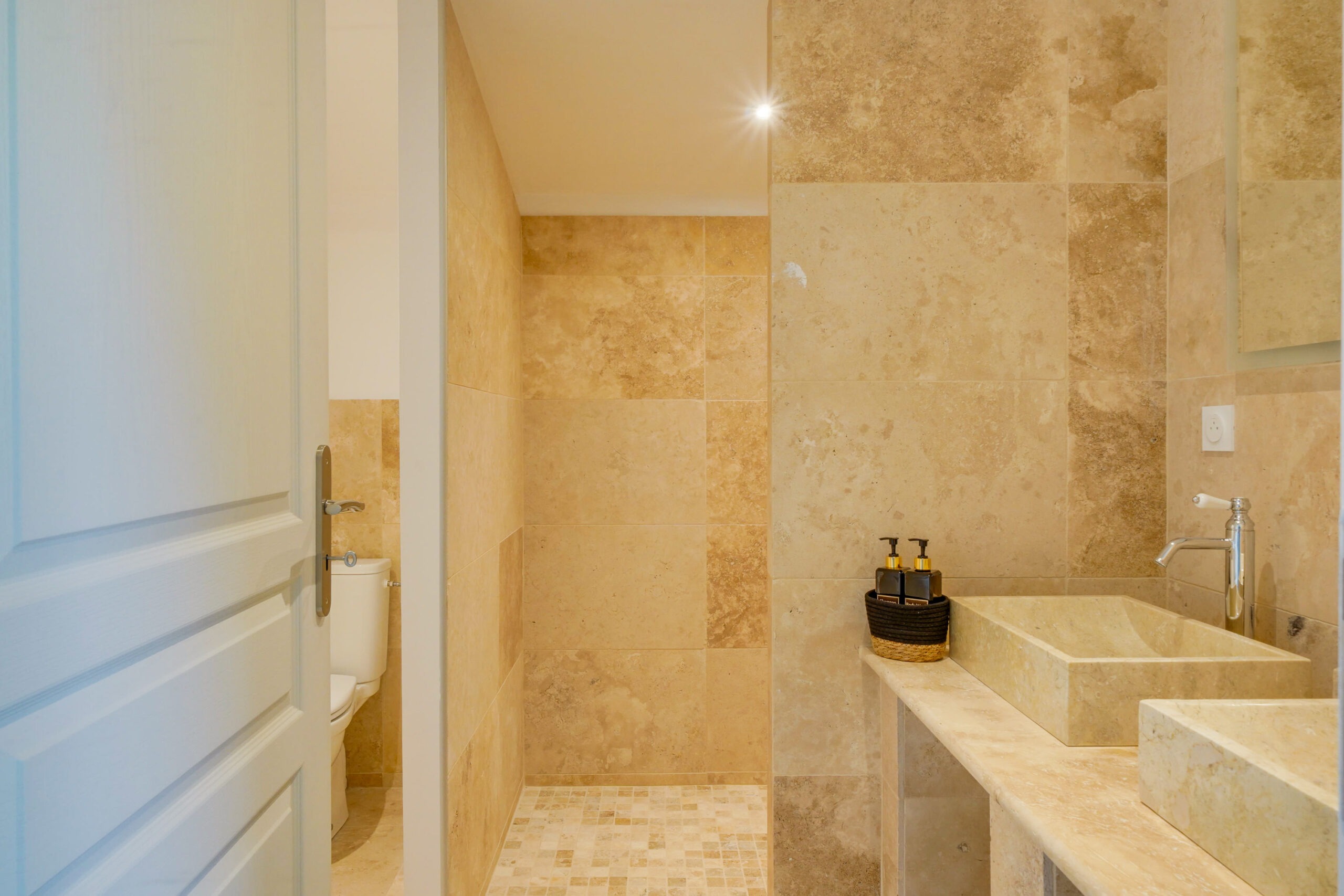 * Une salle d’eau avec vasque, WC et une grande douche.