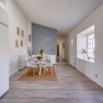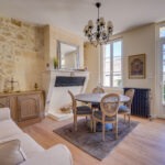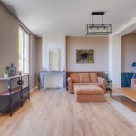 * Une grande pièce de vie lumineuse avec de larges fenêtres qui inondent l’espace de lumière naturelle, comprenant :