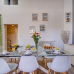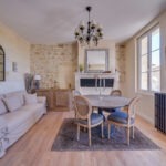 * Un salon avec canapés, fauteuils, une TV et un espace chaleureux avec une table, parfaite pour des moments de partage.