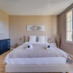 * Une première chambre avec un lit Queen-Size, une commode de rangement et une grande salle d’eau attenante