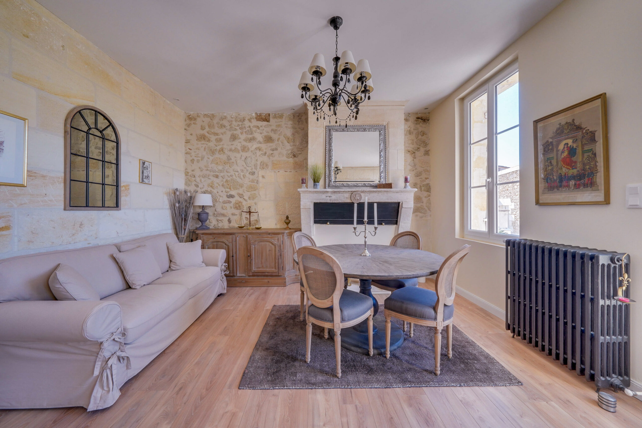 * Un salon avec canapés, fauteuils, une TV et un espace chaleureux avec une table, parfaite pour des moments de partage.